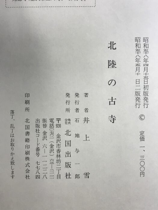 北陸の古寺 北国出版社 井上 雪