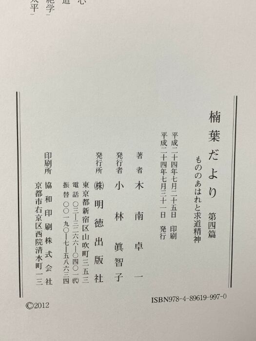 タイトル:楠葉だより 第4篇 明徳出版社 木南 卓一