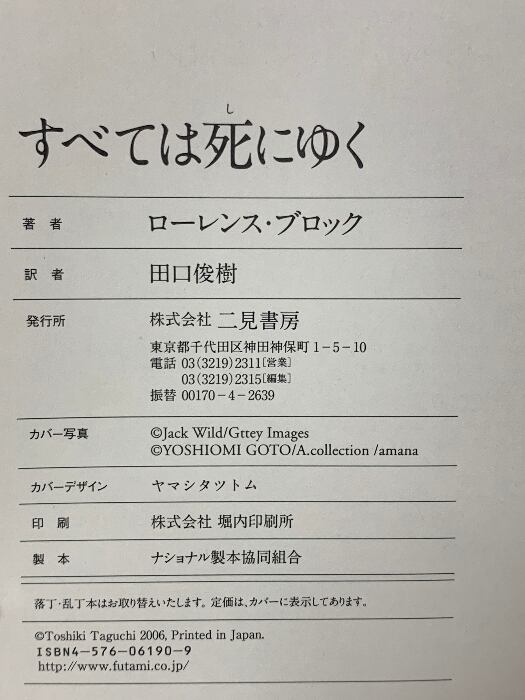 タイトル:すべては死にゆく 二見書房 ローレンス・ブロック