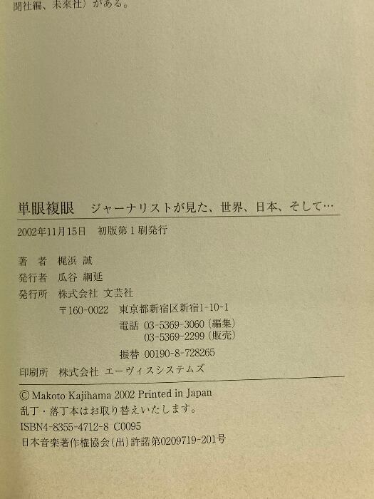タイトル:単眼複眼: ジャーナリストが見た、世界、日本、そして… 文芸社 梶浜 誠