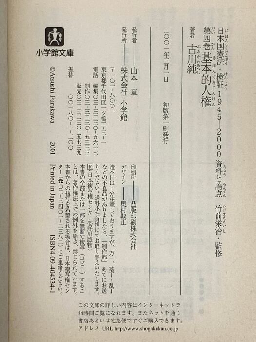 日本国憲法・検証 第4巻: 1945-2000資料と論点 (小学館文庫 R 憲- 4) 小学館 古川 純