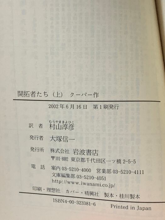 開拓者たち 上 (岩波文庫 赤 338-1) 岩波書店 クーパー