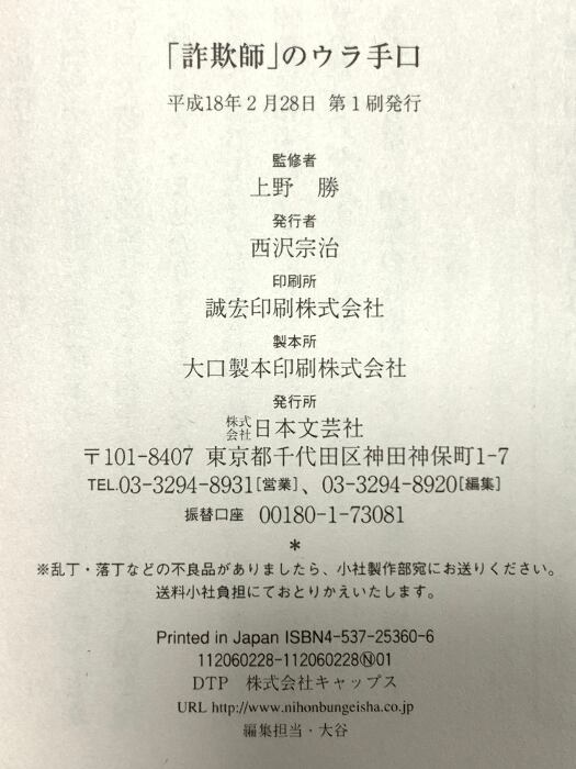 タイトル:「詐欺師」のウラ手口: あなたを狙う悪のカラクリ&テクニックを大公開!! 日本文芸社 上野勝