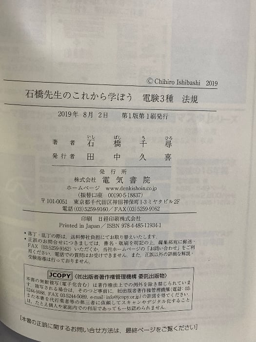 石橋先生のこれから学ぼう 電験3種 法規 電気書院 石橋千尋