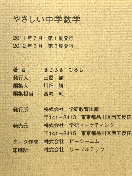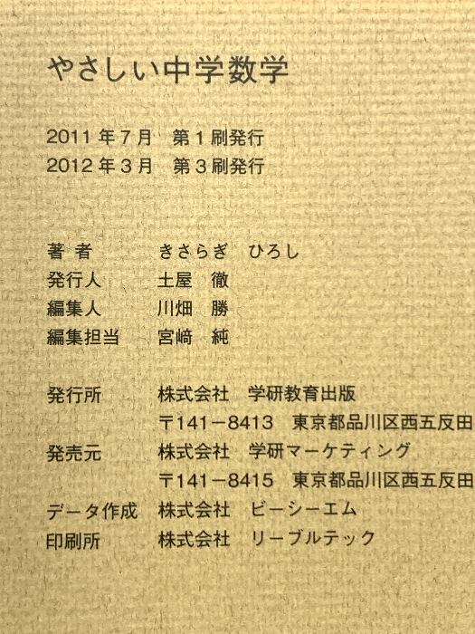 タイトル:やさしい中学数学 学研プラス きさらぎ ひろし