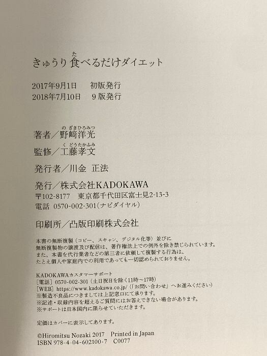 タイトル:きゅうり食べるだけダイエット KADOKAWA 野崎 洋光