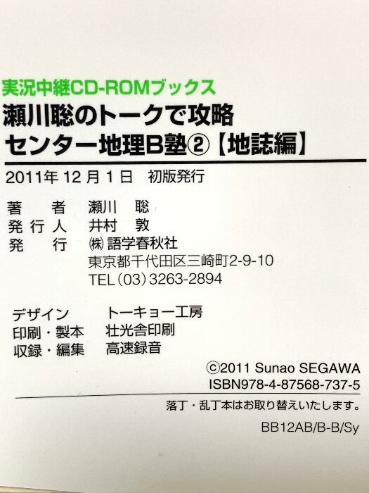 瀬川聡のトークで攻略センター地理B塾 2(地誌編) (実況中継CD-ROMブックス) 語学春秋社 瀬川 聡