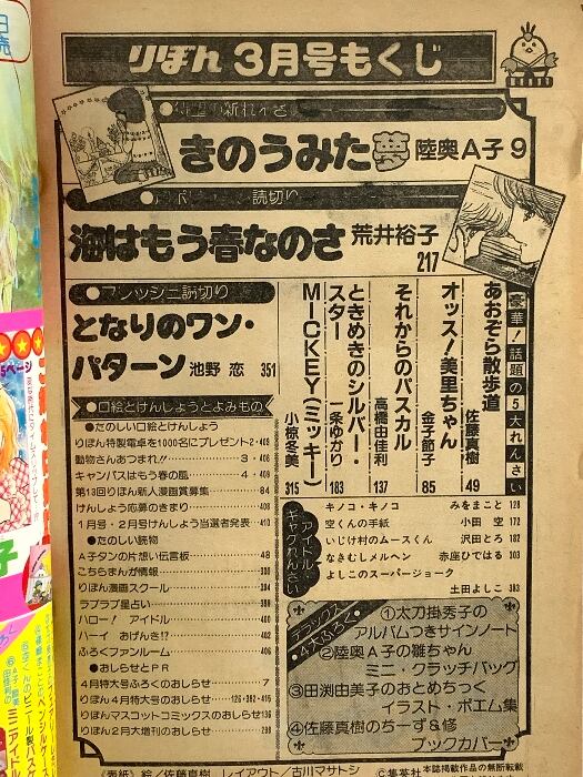 3 りぼん 昭和55年3月1日 3月号 陸奥A子 荒井裕子 佐藤麻紀集英社