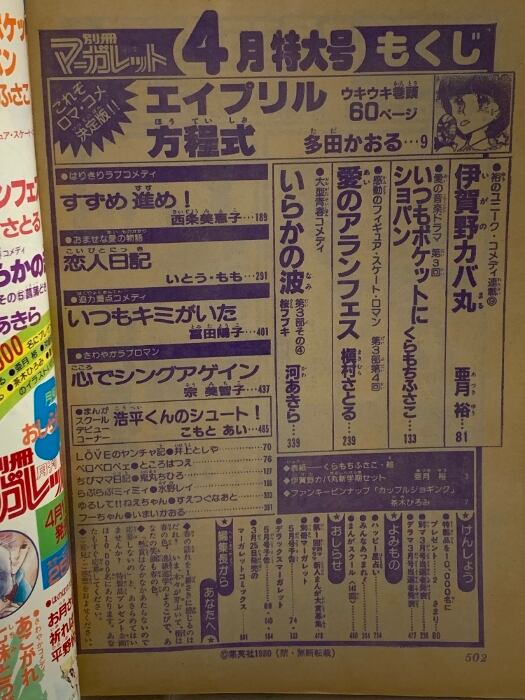 10 別冊マーガレット 昭和55年4月1日 4月特大号 多田かおる 宗美智子 西条美恵子 集英社