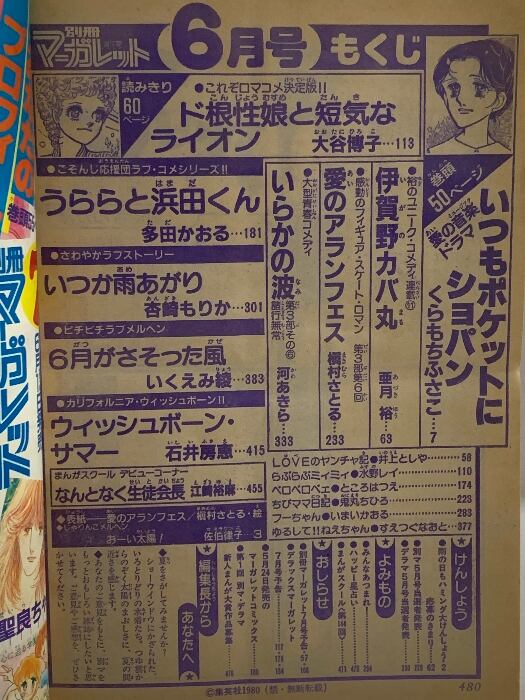 12 別冊マーガレット 昭和55年6月1日 6月号 くらもちふさこ 亜月祐 槇村さとる 集英社