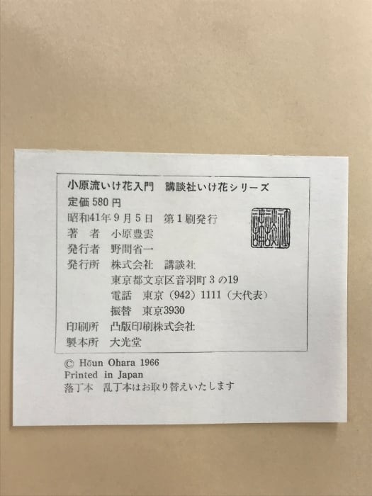 小原流いけ花入門 講談社いけ花シリーズ すぐわかる分解写真式 講談社 小原豊雲 昭和41年