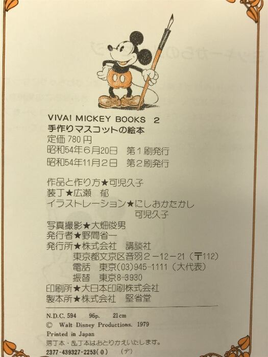 手作りマスコットの絵本 VIVA! MICKEY BOOKS 講談社 可児久子 昭和54年