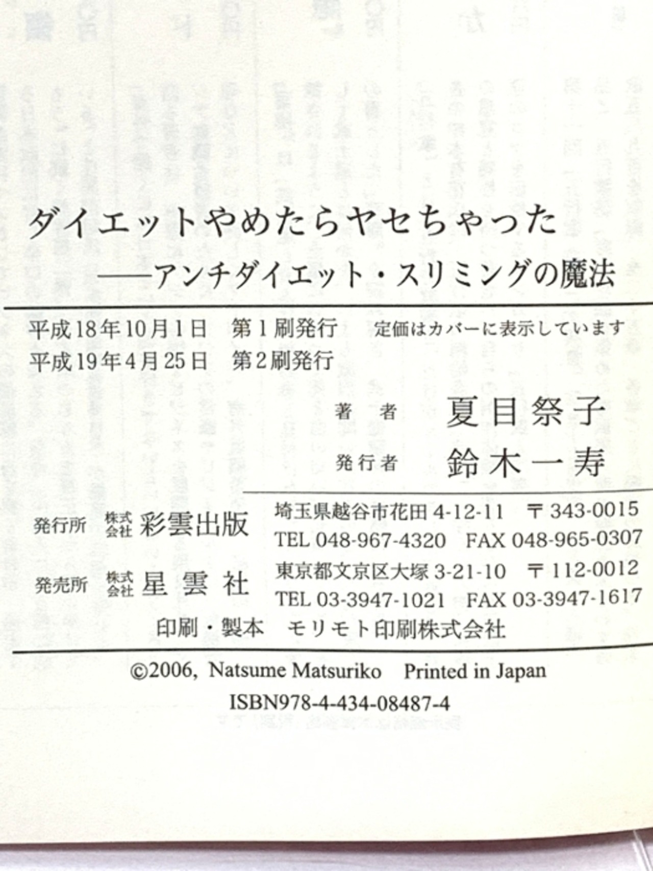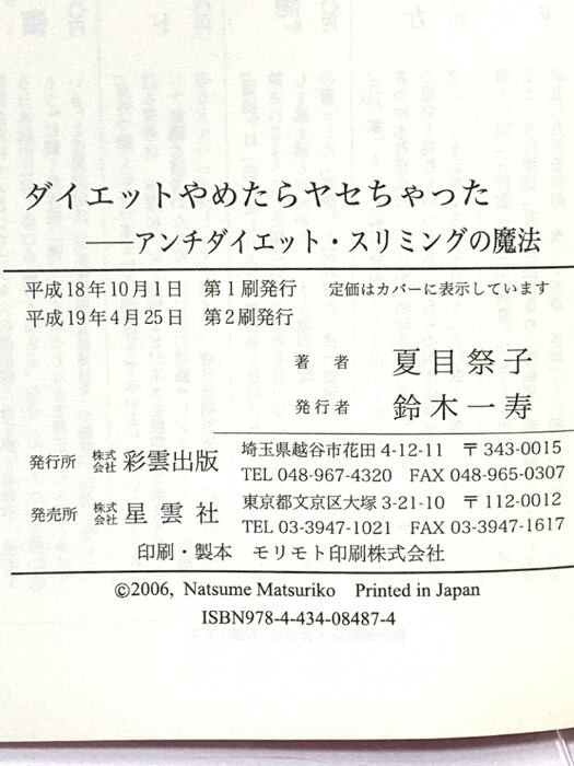 ダイエットやめたらヤセちゃった: アンチダイエット・スリミングの魔法 (彩ブックス) 彩雲出版 夏目 祭子