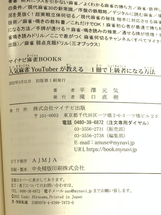 タイトル:人気麻雀YouTuberが教える 1冊で上級者になる方法 (マイナビ麻雀BOOKS) マイナビ出版 平澤 元気