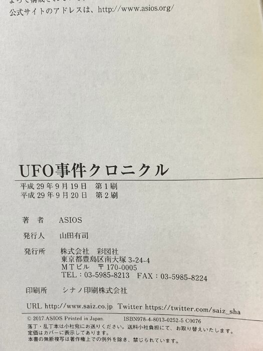 タイトル:UFO事件クロニクル 彩図社 ASIOS