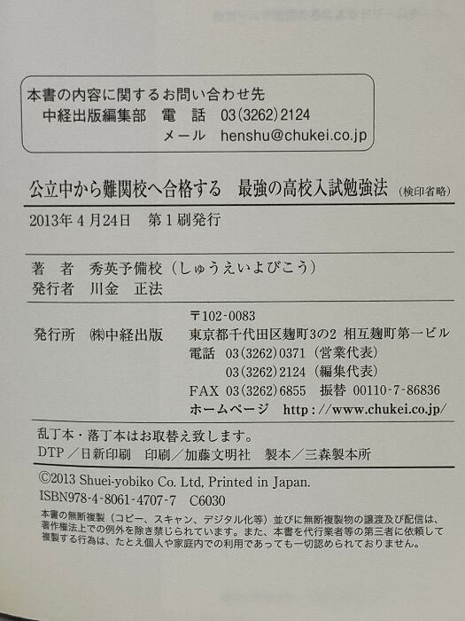 公立中から難関校へ合格する 最強の高校入試勉強法 KADOKAWA(中経出版) 秀英予備校