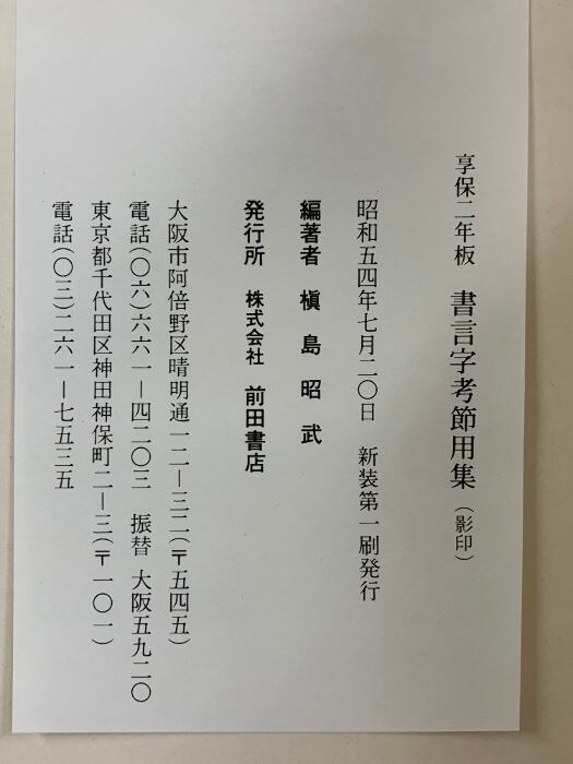 タイトル:書言字考節用集(影印)(享保2年板)発行:株式会社前田書店 昭和54年