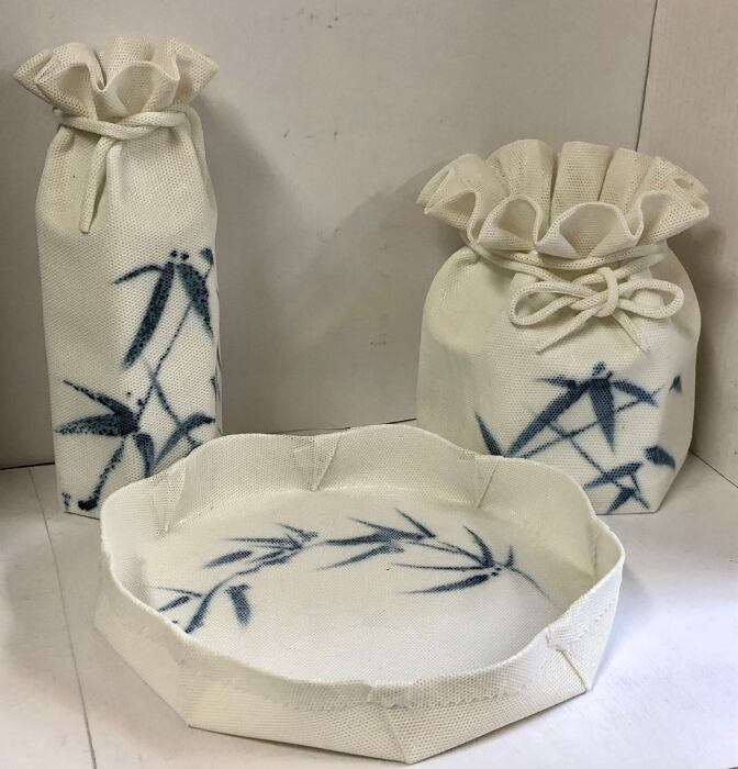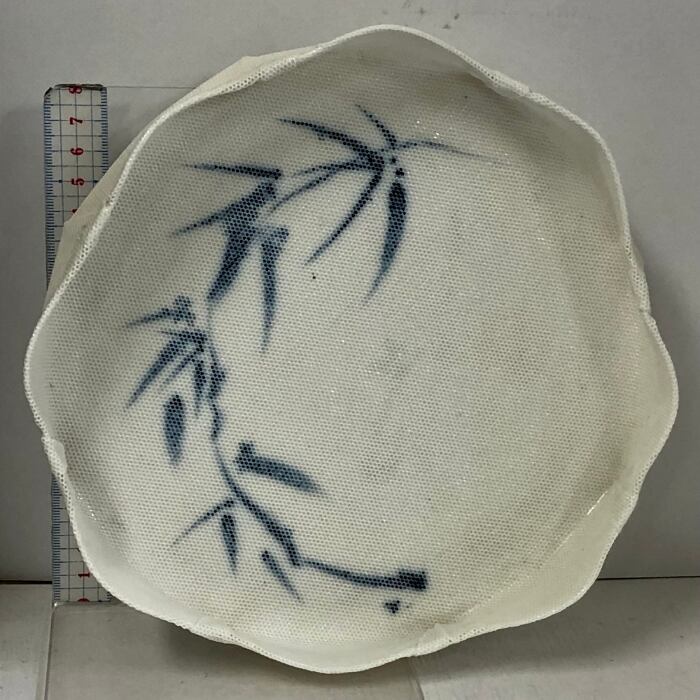 加藤五山作 陶器 3点 セット 極薄白磁 染付花入 花瓶 花器 花入れ 花生け 菓子皿 華道 陶芸