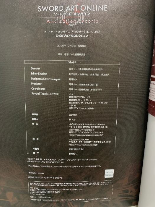 タイトル:ソードアート・オンライン アリシゼーション リコリス 公式ビジュアルコレクション KADOKAWA 電撃ゲーム書籍編集部