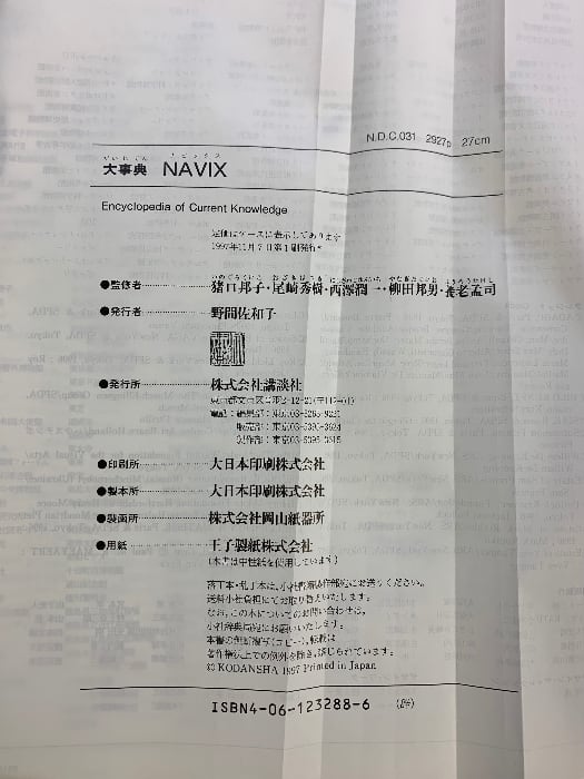 タイトル:大事典NAVIX: Encyclopedia ofCurrentKnowledge 講談社 監修:猪口邦子 柳田邦夫 養老孟司 尾崎秀樹 西澤潤一