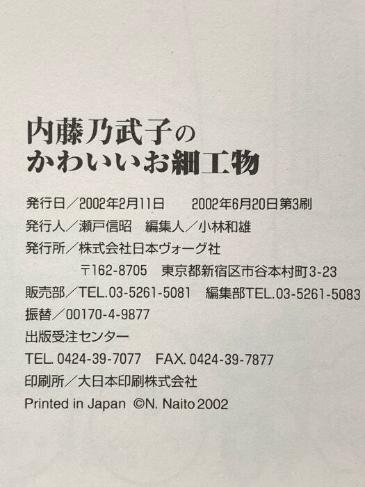内藤乃武子のかわいいお細工物: 縮緬でつくるお雛さま・つり草・輪下げ、干支と歳時飾り、細工袋、お人形など 詳しい 日本ヴォーグ社 内藤 乃武子