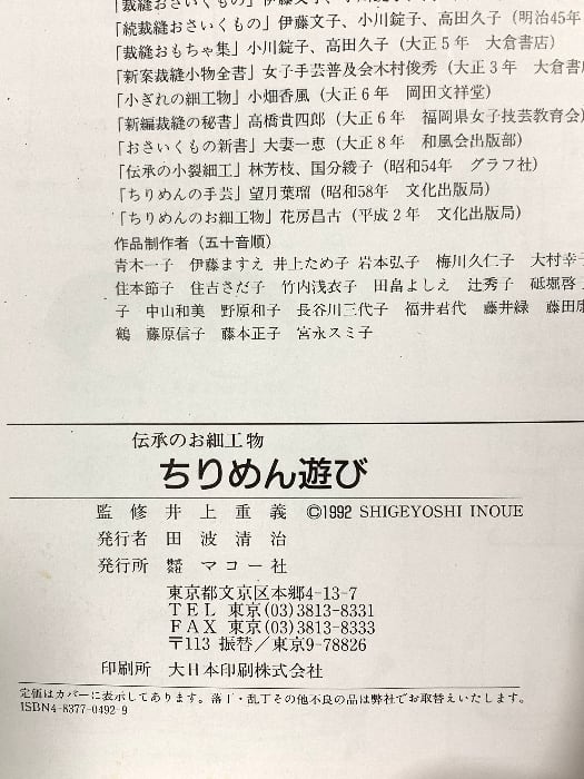 タイトル:ちりめん遊び: 伝承のお細工物 マコー社 井上 重義