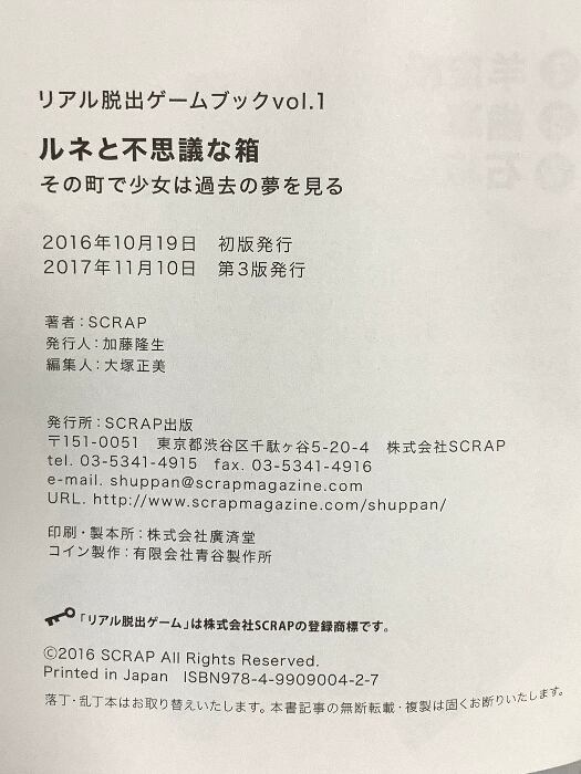 リアル脱出ゲームブックvol.1 ルネと不思議な箱 その町で少女は過去の夢を見る(謎解き) SCRAP出版 SCRAP