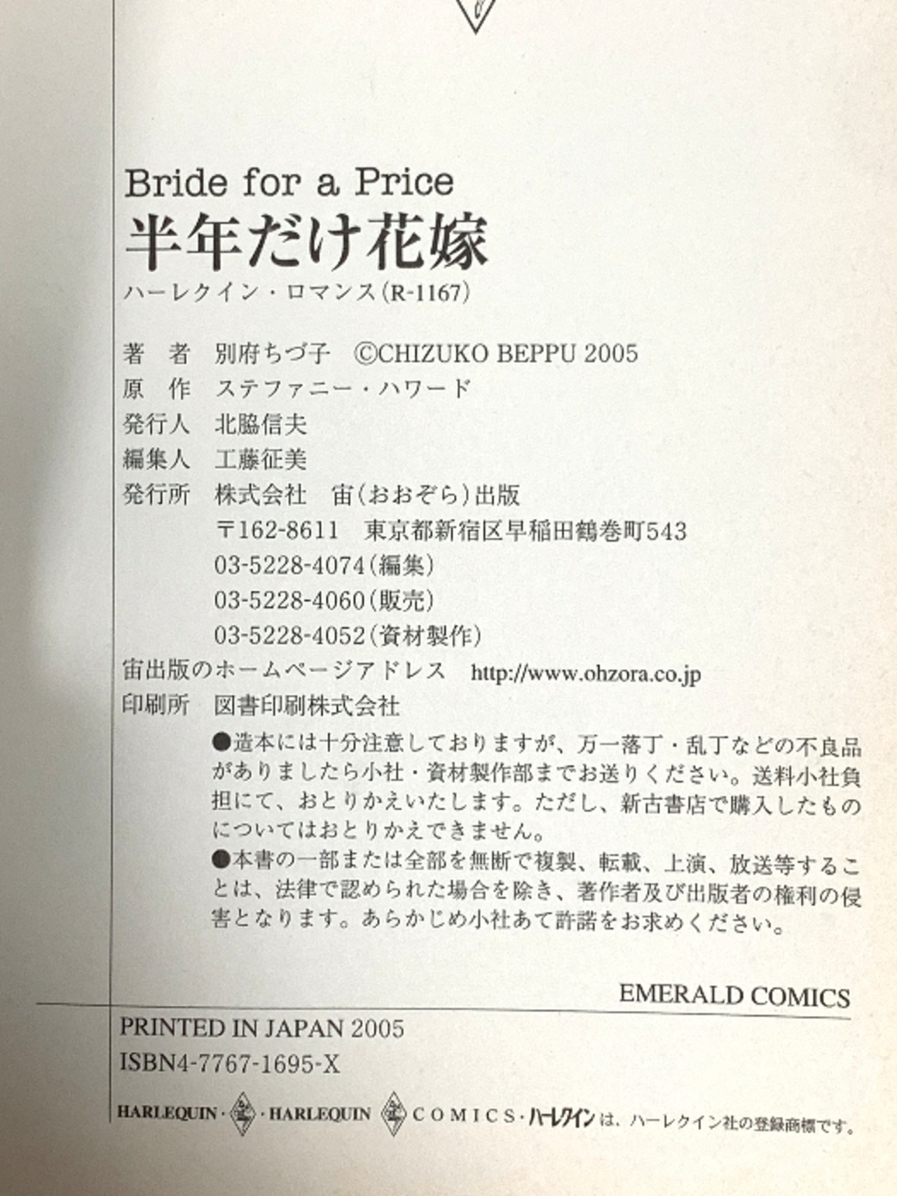 タイトル:半年だけ花嫁 (エメラルドコミックス ハーレクインシリーズ) 宙出版 ステファニー・ハワード