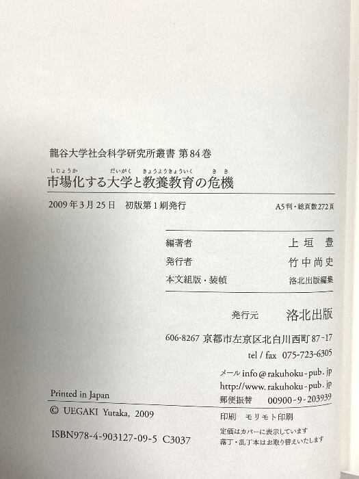 タイトル:市場化する大学と教養教育の危機 (龍谷大学社会科学研究所叢書 第 84巻) 洛北出版 上垣 豊