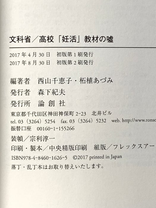文科省/高校 「妊活」教材の嘘 論創社 西山 千恵子 編著