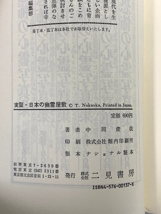 タイトル:実証・日本の幽霊屋敷 (サラブレッド・ブックス 187) 二見書房 中岡 俊哉
