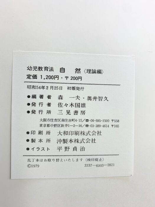 タイトル:幼児教育法[自然]理論編 編著:森一夫 奥井智久 発行:三晃書房 昭和54年