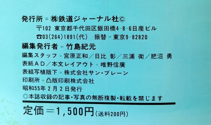 年鑑[国鉄現役車輌1980]鉄道ジャーナル別冊No.4 機関車・電車・気道車・客貨車 発行:鉄道ジャーナル 昭和55年