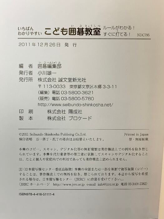 タイトル:いちばんわかりやすいこども囲碁教室: ルールがわかる!すぐに打てる! 誠文堂新光社 囲碁編集部