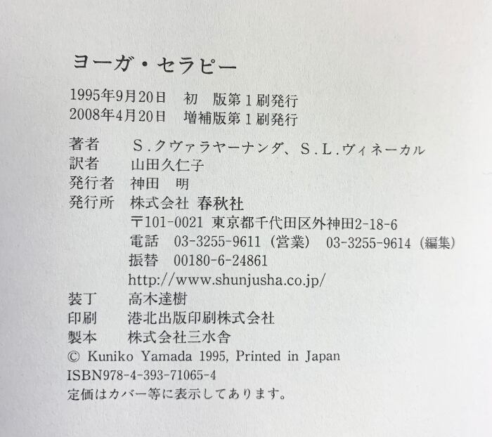 タイトル:(旧版)ヨーガ・セラピー〈増補版〉 春秋社 S. クヴァラヤーナンダ