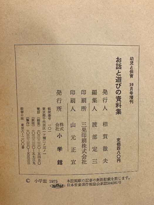 幼児と保育 10月号増刊 お話と遊びの資料集 昭和50年10月10日発行 小学館 幼児が喜ぶお話集 お話から発展遊び