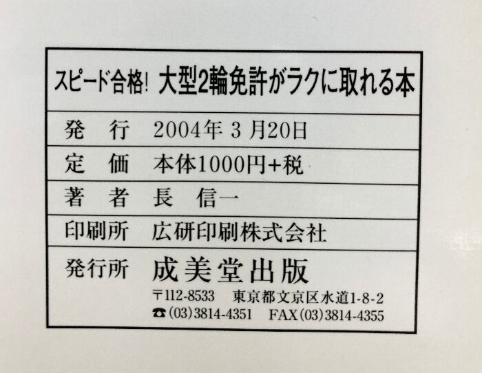 タイトル:スピード合格!大型2輪免許がラクに取れる本 成美堂出版 長 信一