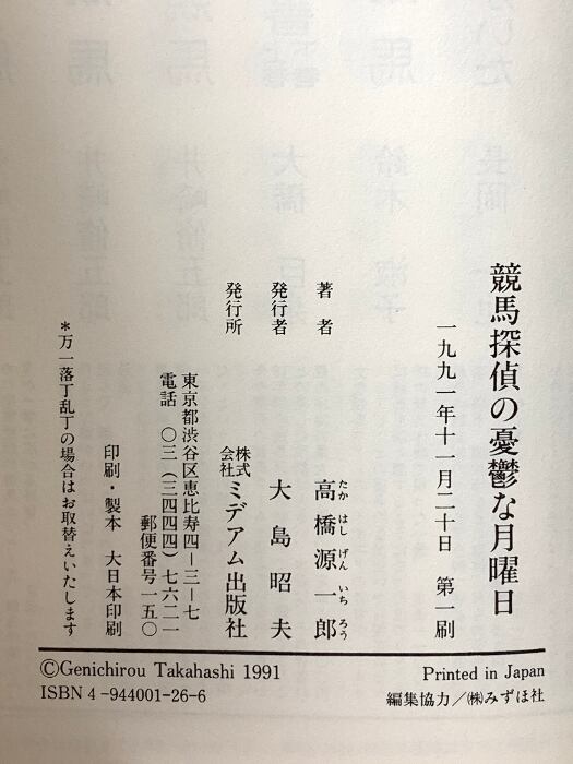 競馬探偵の憂鬱な月曜日 ミデアム出版社 高橋 源一郎