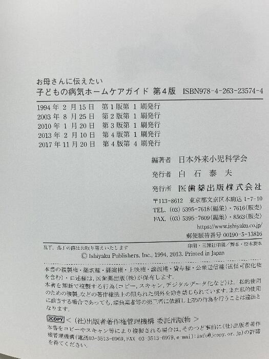 タイトル:お母さんに伝えたい子どもの病気ホームケアガイド第4版 医歯薬出版 日本外来小児科学会