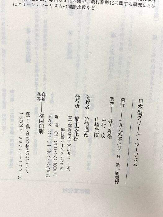 タイトル:日本型グリーン・ツーリズム 都市文化社 井上 和衛