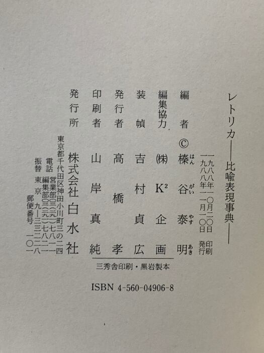 タイトル:レトリカ: 比喩表現事典 RHETORICA 白水社 榛谷 泰明