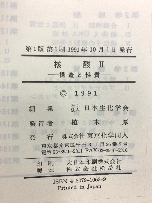 新生化学実験講座 2 核酸 2 構造と性質 東京化学同人 日本生化学会
