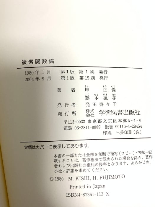 タイトル:複素関数論 学術図書出版社 岸 正倫
