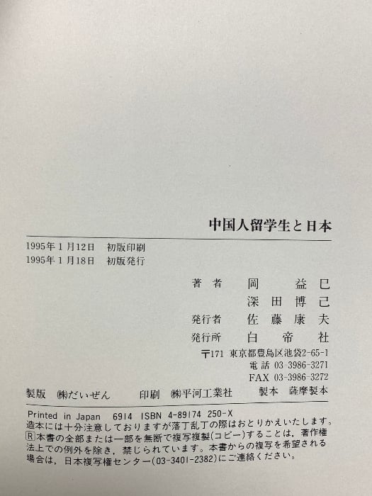 タイトル:中国人留学生と日本 白帝社 岡 益巳