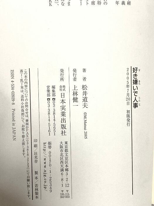タイトル:好き嫌いで人事 日本実業出版社 松井 道夫