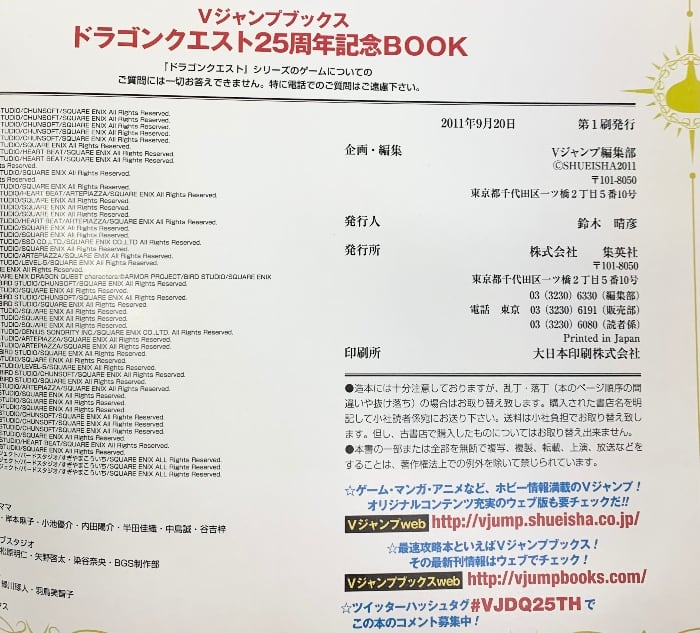 タイトル:「ドラゴンクエスト25周年記念BOOK」Vジャンプブックス DORAGON QUEST 集英社 2011年