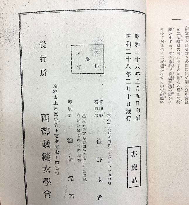 裁断縫實習教科書全集(1~8巻/全8冊セット)『和裁八書』発行:西部裁縫女学會(京都市) 著:笹野未香 昭和28年【非売品】