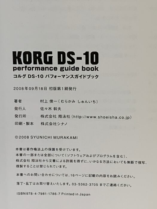 タイトル:KORG DS-10 performance guide book 翔泳社 村上 俊一