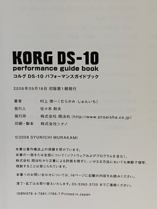 KORG DS-10 performance guide book 翔泳社 村上 俊一