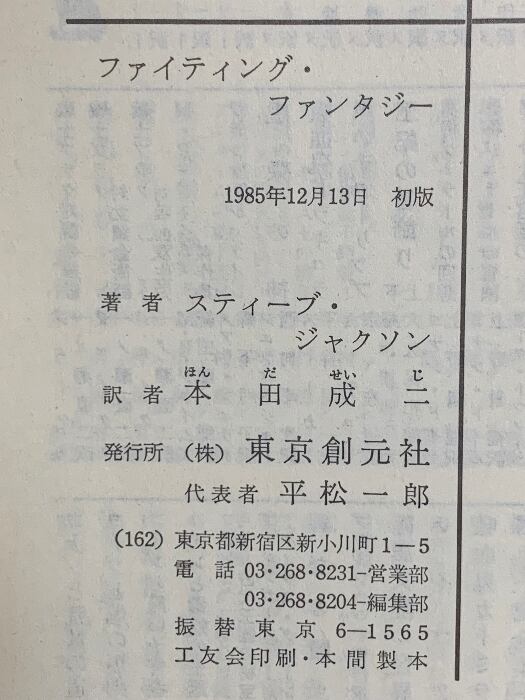 スーパーアドベンチャーゲーム ファイティング・ファンタジー 東京創元社 スティーブ・ジャクソン